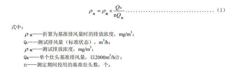 獲得油煙、顆粒物和非甲烷總烴的測(cè)試排放濃度后,應(yīng)將測(cè)試排放濃度折算為基準(zhǔn)風(fēng)量時(shí)的排放濃