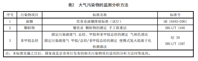 餐飲業(yè)大氣污染物的分析測(cè)定應(yīng)按照表2規(guī)定的方法執(zhí)行。