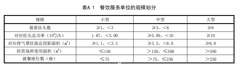 排放。餐飲服務(wù)單位的規(guī)模劃分參見附錄 A,凈化設(shè)備的污染物去除效率選擇參見附錄 B。